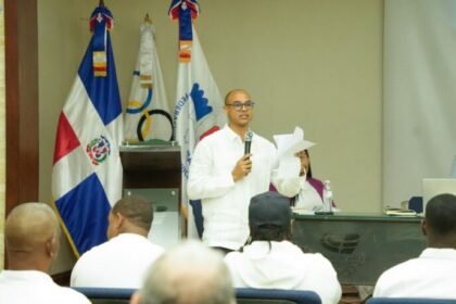El presidente de la Federación Dominicana de Bádminton, Nelson Javier Ozuna, se dirige a todos los dirigentes de las asociaciones provinciales que se dieron cita en la asamblea general ordinaria efect...