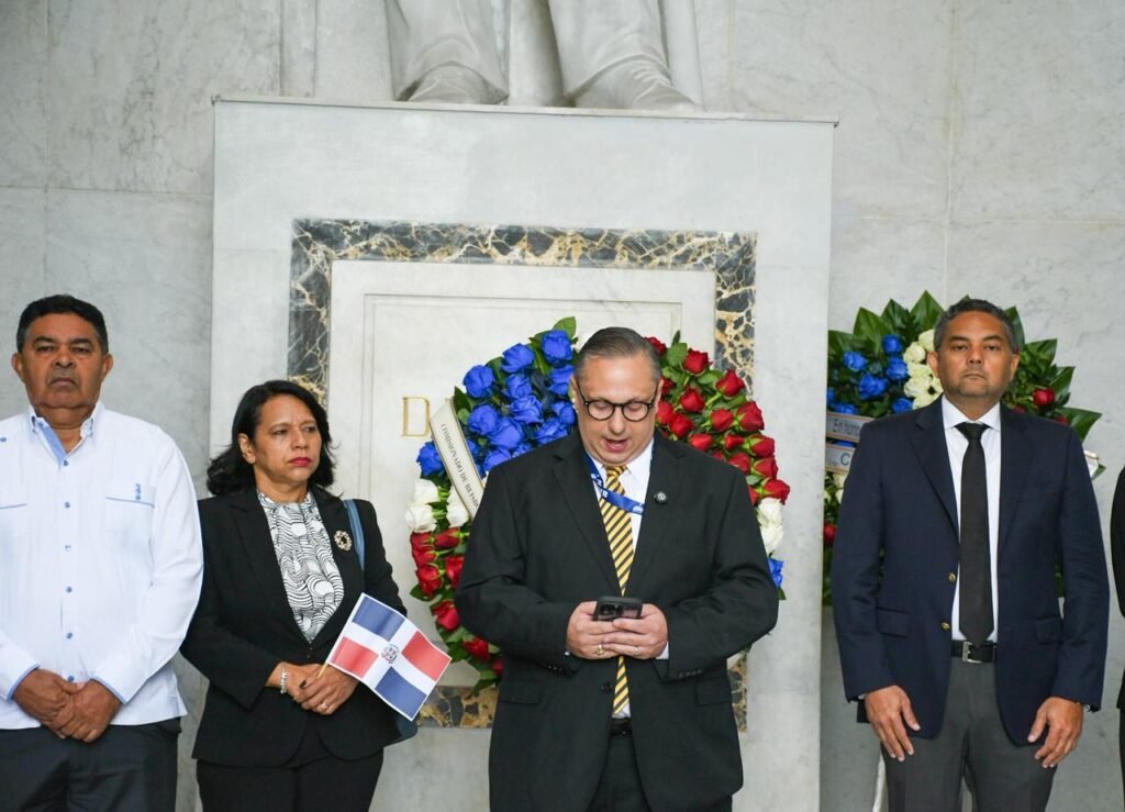 “Hoy al hacer entrega de esta ofrenda floral reconocemos y honramos el legado de nuestros Padres de la Patria, quienes cimentaron los pilares de nuestra nación con su sacrificio, visión y lucha, inspirándose en la construcción de un futuro próspero y repleto de valores”, expuso Rodríguez durante su alocución.